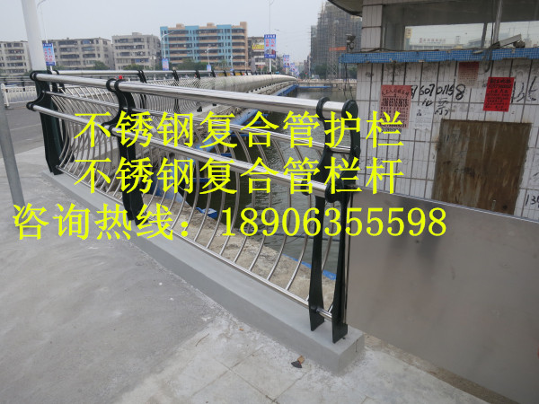 護欄簡介:不銹鋼復合管制作成不銹鋼復合管欄桿,它不僅具有不銹鋼管的豪華美觀和現代氣息,又具有普通碳鋼管的堅韌性。是價昂不銹鋼管的替代品,它與鋼板立柱配合,做成城市、道橋等的安全欄桿。不僅牢固、大方,且可造型各異,給都市別一種亮麗風景線。